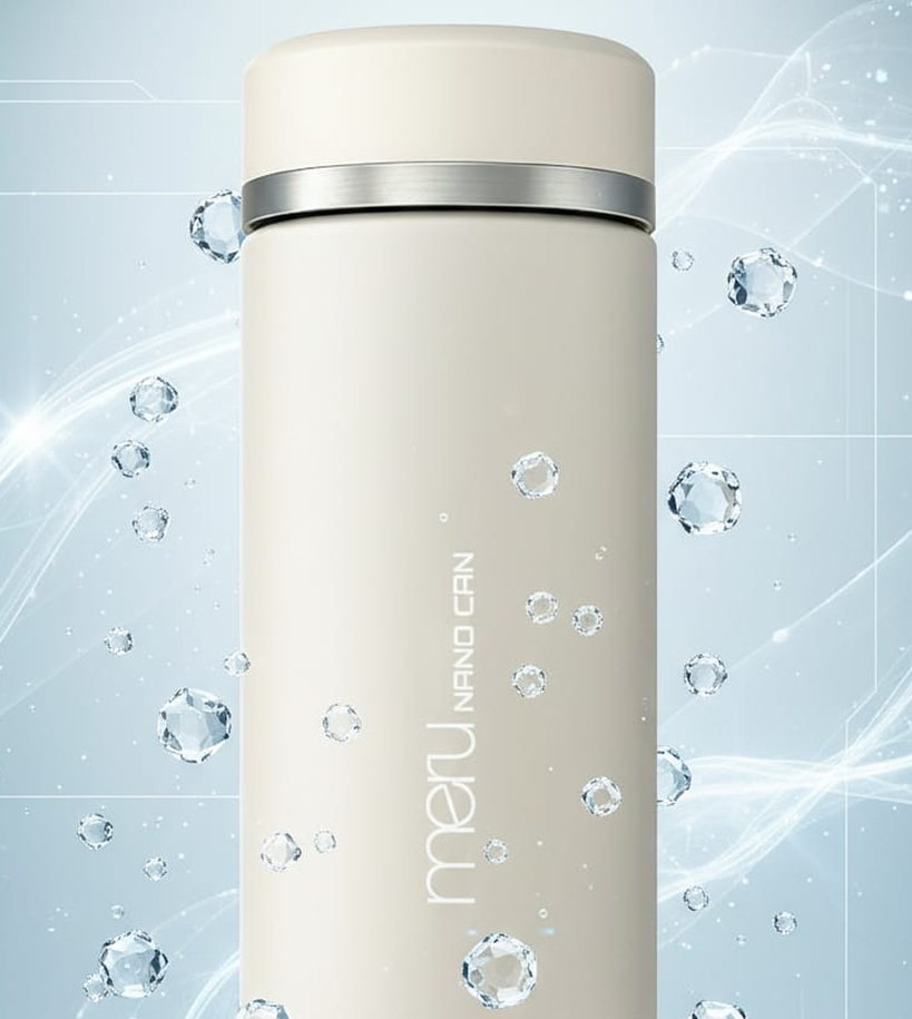 MERU Nano Can bukan sekadar wadah air, melainkan perangkat aktivasi air berbasis teknologi yang membantu optimalisasi penyerapan air oleh tubuh melalui gelombang terahertz dan far infrared untuk mendukung regenerasi dan perlindungan sel.